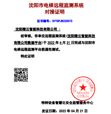 電梯物聯網設備通過沈陽市電梯遠程監(jiān)測系統驗證